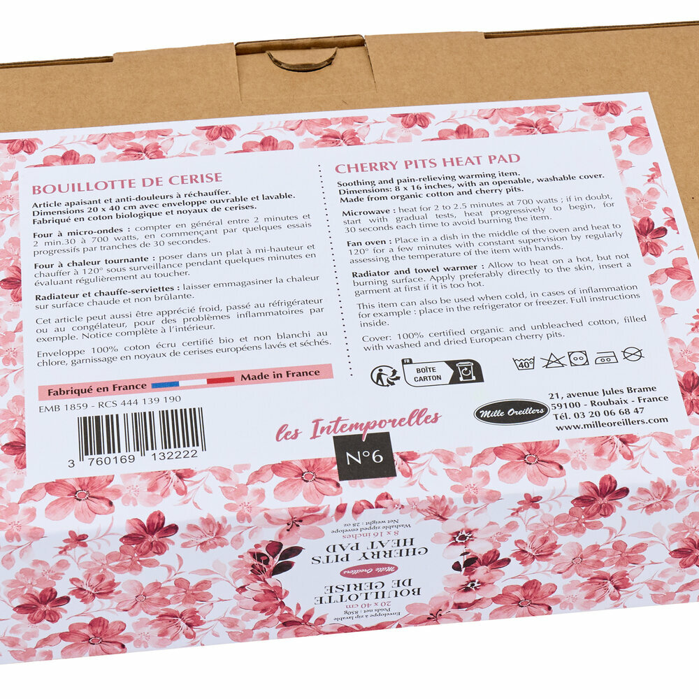 La bouillotte de Cerise L'Intemporelle n°6 de la marque Mille Oreillers est idéale pour soulager, réchauffer et apaiser.