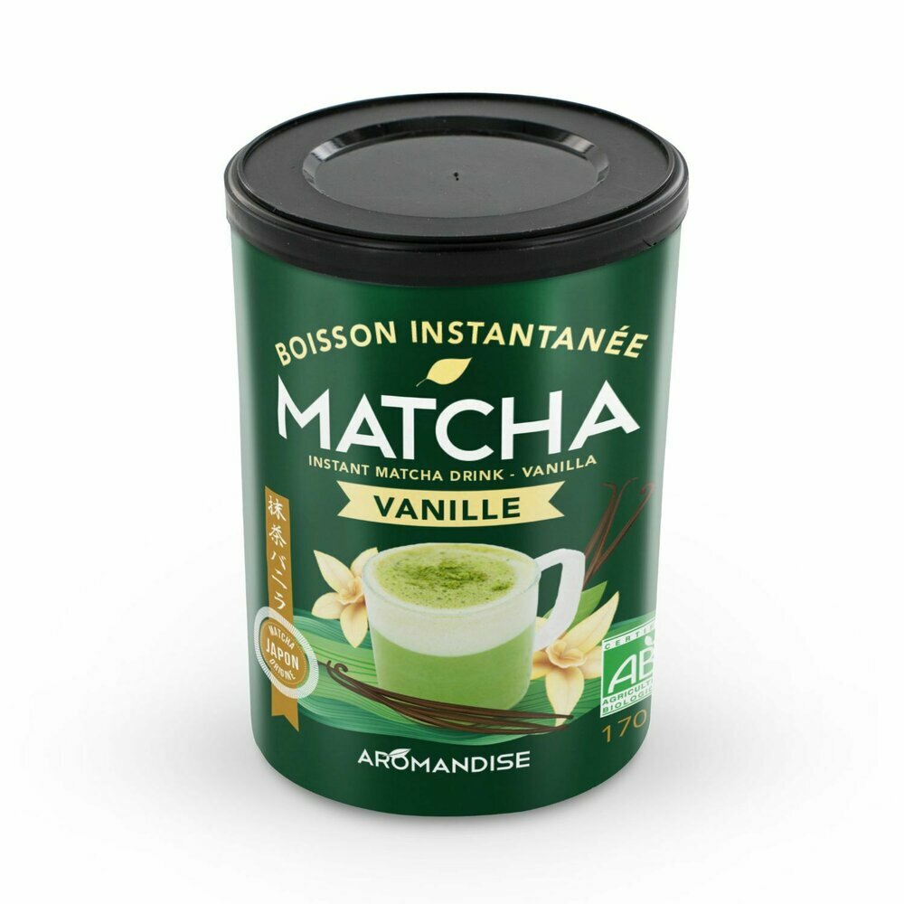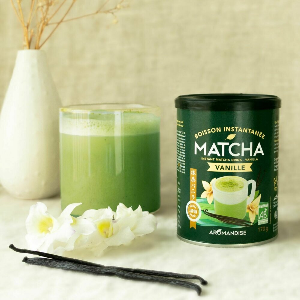 Le Latte Matcha Vanille – Aromandise est une préparation instantanée biologique qui associe la finesse du matcha à la douceur réconfortante de la vanille.
